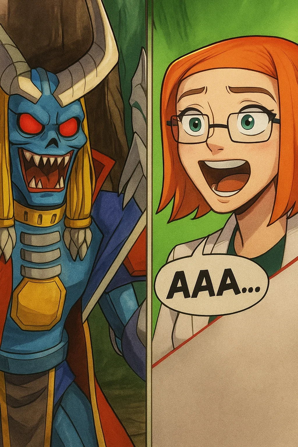 Inside the Spell Realm, Ammarr the Vampire is disappointed at the monster.